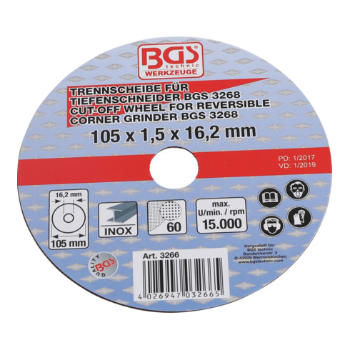 inkl. MwSt.BGS Trennscheibe für BGS Tiefenschneider Ø 105 x 1,5 x 16,2 mm