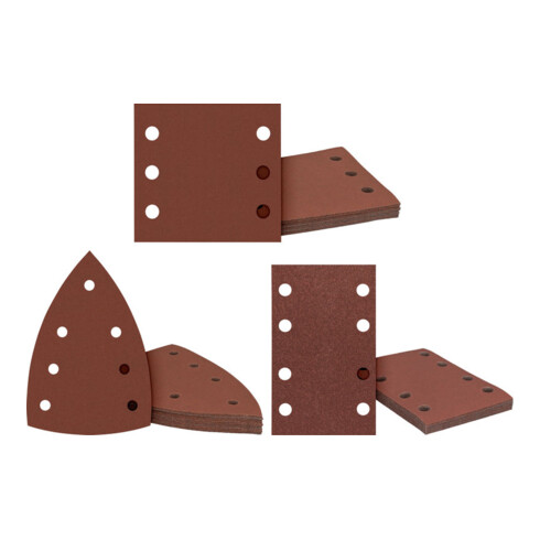 - Die Oberfläche mit elektrostatisch offen gestreuten Schleifkörnern mit definierten Zwischenräumen gestattet eine gleichmäßige Staubabsaugung und verhindert somit ein Verstopfen des Blattes
