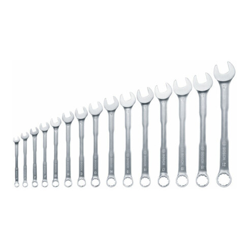 - mit kombinierten Maul- und Ringschlüsseln in den Größen: 6, 7, 8, 9, 10, 11, 12, 13, 14, 15, 16, 17, 18, 19, 21