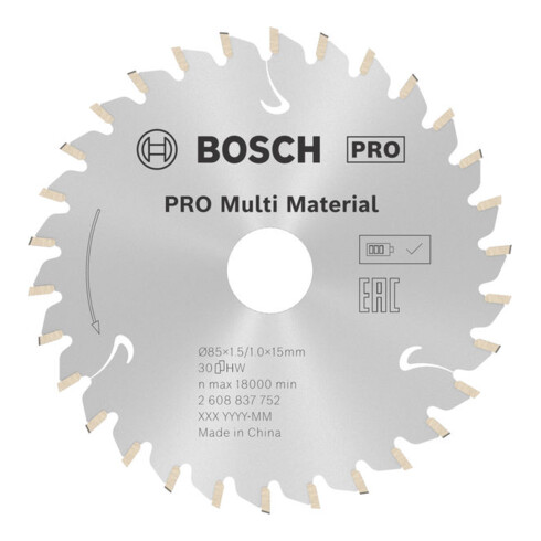 inkl. MwSt.Bosch Kreissägeblatt Standard for Multimaterial für Akkusägen 85 x 1,5/1 x 15 30 Zähne