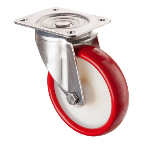 - Material der Lauffläche: Polyurethan 95+/-3 Shore A rot