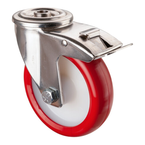 - Material der Lauffläche: Polyurethan 95+/-3 Shore A rot