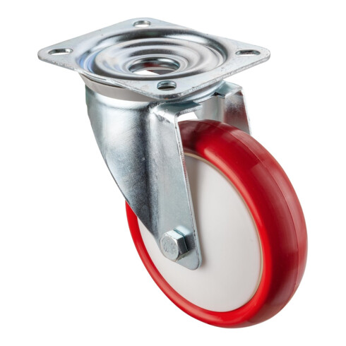 - Material der Lauffläche: Polyurethan 95+/-3 Shore A rot