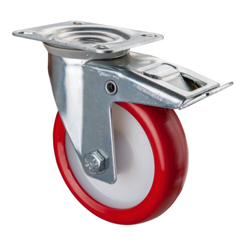 - Material der Lauffläche: Polyurethan 95+/-3 Shore A rot
