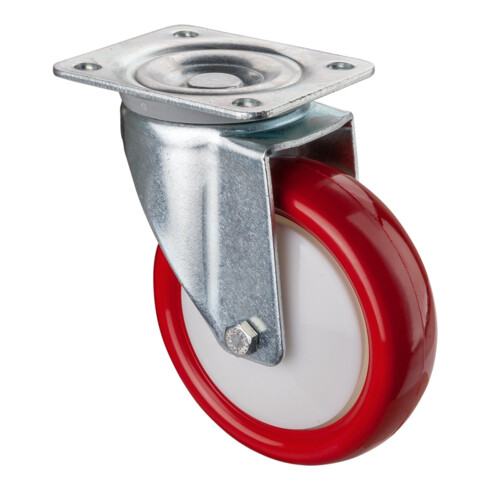 - Material der Lauffläche: Polyurethan 95+/-3 Shore A rot