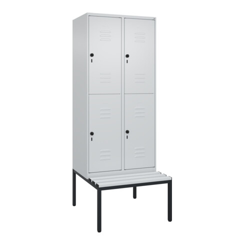 C+P Doppelstock-Spind Classic PLUS, Bank, 2 Abteile, 2120x800x815mm, 7035/7035 Verschluss Sicherheits-Drehriegel Sitzbanktyp untergebaut Material Sitzfläche Kunststoff
