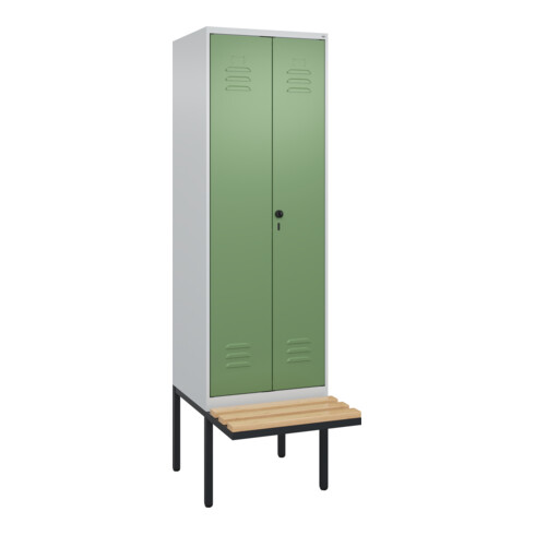 C+P PSA Doppel-Spind Classic PLUS, Bank, 2 Abteile, 2120x600x815mm, 7035/6011 Verschluss Sicherheits-Drehriegel Sitzbanktyp auskragend Material Sitzfläche Buche-Hartholz