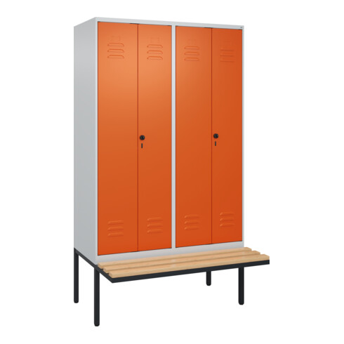 inkl. MwSt.C+P PSA Doppel-Spind Classic PLUS, Bank, 4 Abteile, 2120x1200x815mm, 7035/2004 Verschluss Sicherheits-Drehriegel Sitzbanktyp auskragend Material Sitzfläche Buche-Hartholz