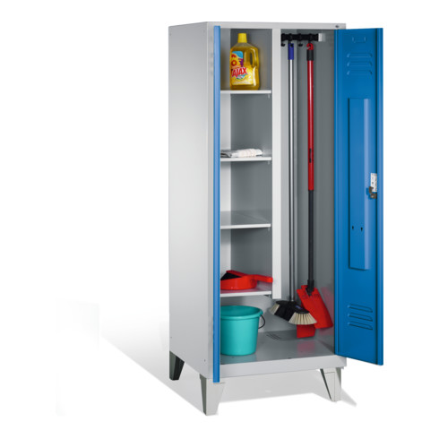 C+P Putzmittel-Spind Classic auf Füßen 2 Abteile Front Lichtblau Korpus Lichtgrau