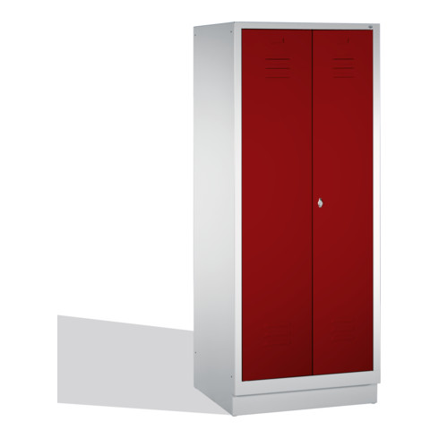 C+P Putzmittel-Spind Classic auf Sockel 2 Abteile Front Rubinrot Korpus Lichtgrau