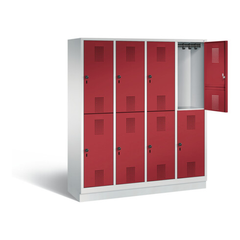 inkl. MwSt.C+P Spind doppelstöckig Evolo, H1800xB1590xT500mm, Front Rubinrot, Korpus Lichtgrau (48320-42)