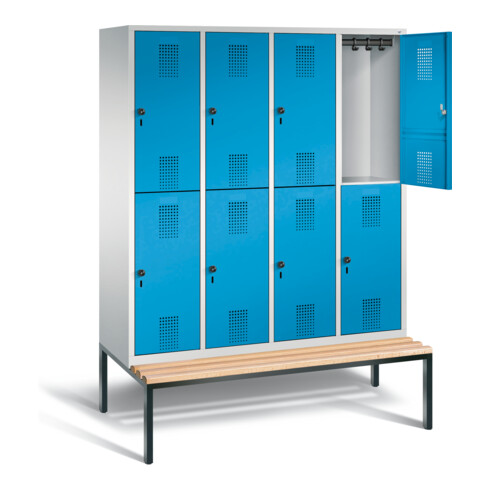 inkl. MwSt.C+P Spind doppelstöckig Evolo, H2090xB1590xT810mm, Front Lichtblau, Korpus Lichtgrau, Gestell Schwarzgrau (48350-42)