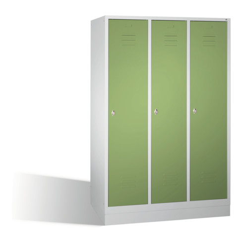 C+P Umkleidespind Classic auf Sockel 3 Abteile Front Resedagrün Korpus Lichtgrau