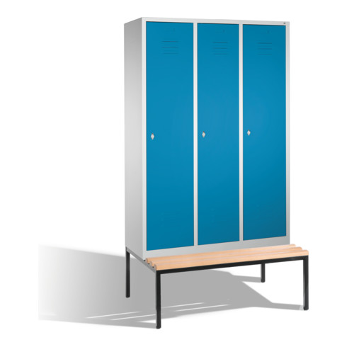 C+P Umkleidespind Classic mit Sitzbank 3 Abteile Front Lichtblau Korpus Lichtgrau