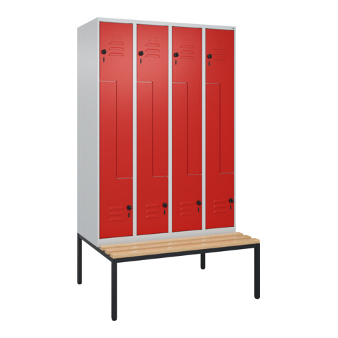 inkl. MwSt.C+P Z-Spind Classic PLUS, Bank, 8 Fächer, 2120x1200x815mm, 7035/3020 Verschluss Sicherheits-Drehriegel Sitzbanktyp untergebaut Material Sitzfläche Buche-Hartholz