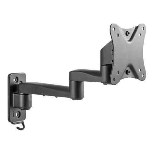 - TV Wandhalterung mit 4 verschiedenen Steckmöglichkeiten, passend für alle Bildschirme mit VESA 75/100 Standard, neigbar +8°, -12°, schwenkbar bis zu 180°, abhängig von der Bildschirmgröße, horizontaler Ausgleichswinkel +/-3°, Wandabstand: min. 81 mm, max. 355 mm, mit inteGr. Kabelführung, inkl. Befestigungsmaterial
