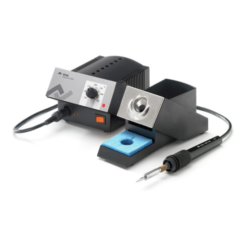 - Temperaturgeregelte Lötstationen mit keramischem PTC-Heizelement und innenbeheizten Ersadur-Dauerlötspitzen (exakte Temperaturfühlung)