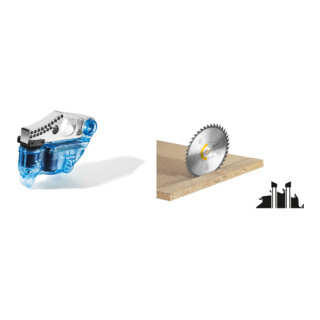 - Noch nie war Sägen sicherer: Bei Hautkontakt löst die Patrone eine vorgespannte Feder und schießt einen Alublock in das Sägeblatt