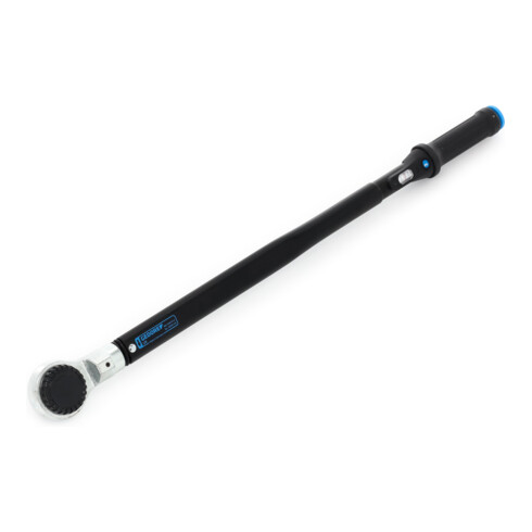 Gedore Torcoflex Drehmomentschlüssel, 3/4 Zoll, 80-400 Nm, Pilzkopf-Umsteckvierkant mit Kugelsicherung, Stahlrohr, Schwarz/Blau