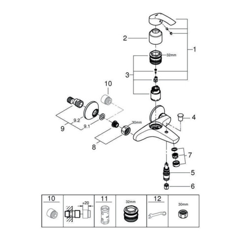 Bedienungshebel aus Metall, SilkMove 35 mm Keramikkartusche, mit Temperaturbegrenzer, variabel einstellbare Mengenbegrenzung, StarLight Oberfläche, automatische Umstellung Wanne/Brause, Auslauf mit Mousseur, integrierter Rückflussverhinderer im Brauseabgang 1/2", S-Anschlüsse, Wandrosetten aus Metall, eigensicher gegen Rückfließen