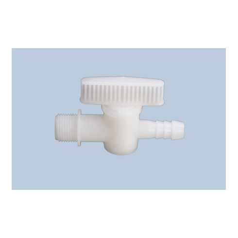 Hünersdorff Durchgangshahn R 1/2" x 1/2" natur, Gewinde + Tüllenanschluss, LDPE