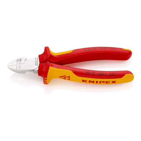 inkl. MwSt.KNIPEX 14 26 160 Abisolier-Seitenschneider isoliert mit Mehrkomponenten-Hüllen, VDE-geprüft verchromt 160 mm