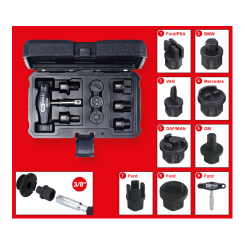 inkl. MwSt.KS Tools 3/8" Öldienst-Spezialprofil-Satz für Kunststoff-Ölablassschrauben, 9-tlg