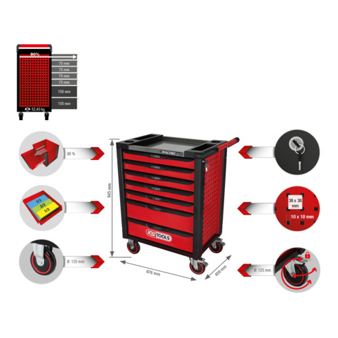 KS Tools RACINGline+ SCHWARZ/ROT Werkstattwagen mit 7 Schubladen