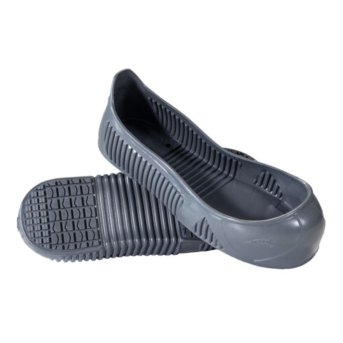 - Dieser widerstandsfähige und wiederverwendbare Überziehschuh aus Naturlatex, mit hochgezogener Ferse ist grau erhältlich. Er verursacht keine Streifen auf hellen Böden