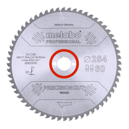 Metabo Kreissägeblatt HW/CT 305 x 30 x 2,4/1,8 Zähnezahl 60 Wechselzahn Spanwinkel 1.5°