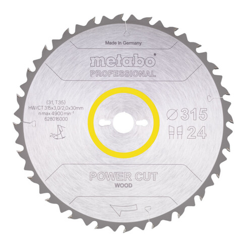 inkl. MwSt.Metabo Sägeblatt "power cut wood - professional", 315x3,0/2,0x30, Z24 WZ 20°