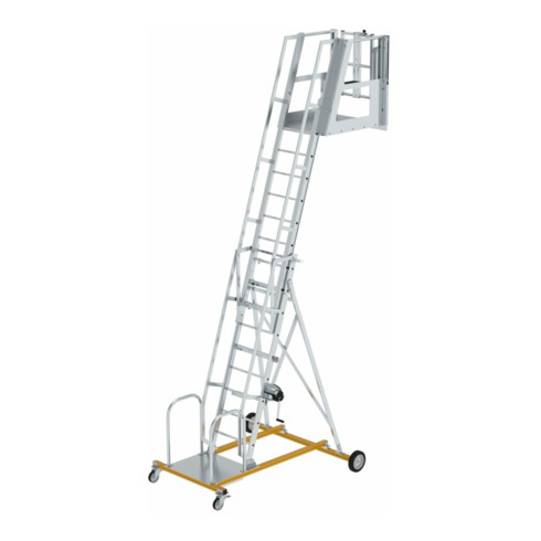 - Fahrwerk gelb pulverbeschichtet mit 4 Rollen, eingebördelte rutschsichere Sprossen