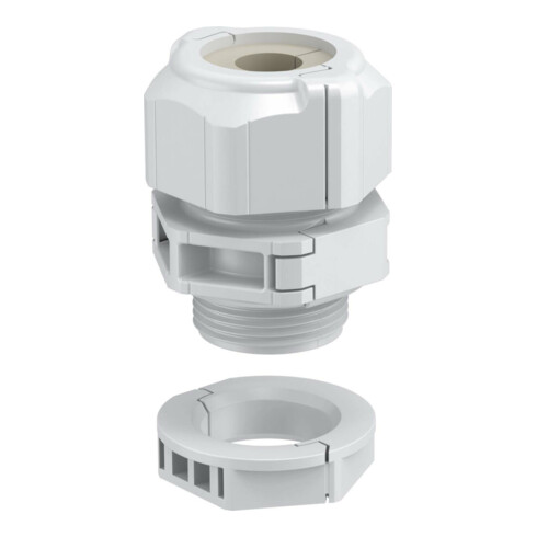 - Die Teilbarkeit der Kabelverschraubung ermöglicht eine problemlose und schnelle Installation von z.B. vorkonfektionierten Kabeln
