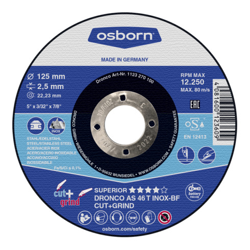 Osborn Kombi-Trenn- und Schruppscheibe AS46T Inox Cut+Grind