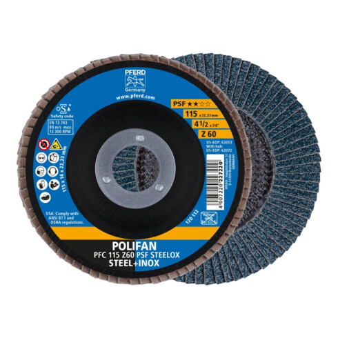 inkl. MwSt.Pferd Fächerschleifscheibe Z 60PSF gerade 115mm K60