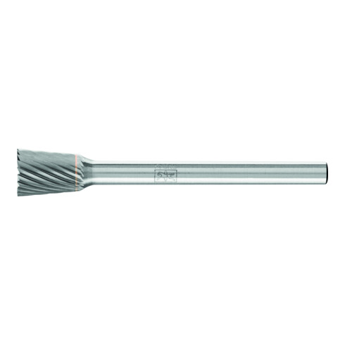 • Stumpfkegelförmiger, zum Schaft hin verjüngter Frässtift nach DIN 8032 mit Verzahnung nach DIN 8033 auf Umfang und Stirn