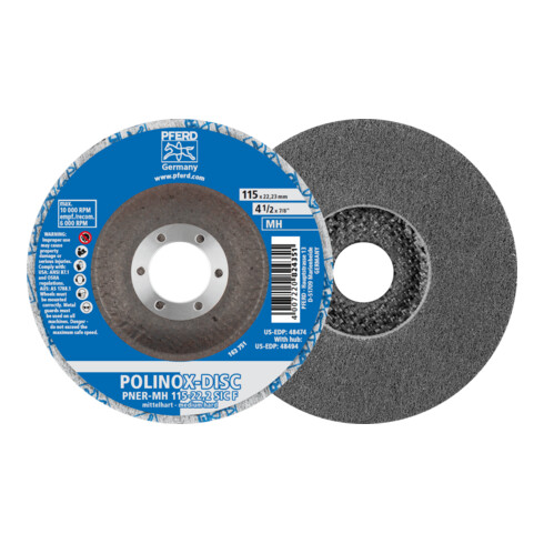 PFERD TOOLS POLINOX verpresste Vlies-Disc PNER Ø 115 mm Bohrung-Ø 22,23 mm Mittehart SIC Fein für Finish
