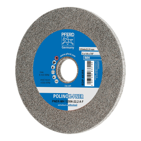 inkl. MwSt.PFERD TOOLS POLINOX verpresstes Vlies-Rad PNER Ø 125x6 mm Bohrung-Ø 22,23 mm Mittelhart A Fein für Finish