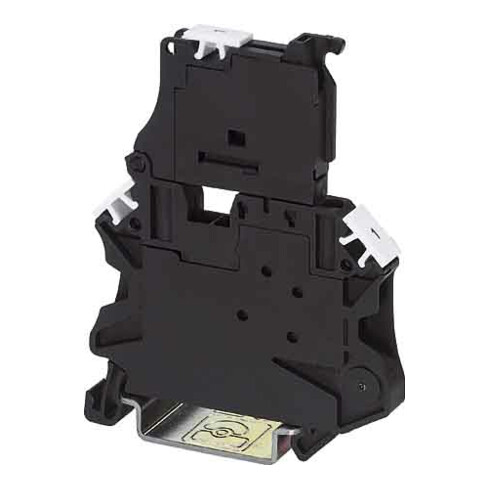 - Sicherungsreihenklemme, Art der Sicherung: Glas / Keramik / ..., Anschlussart: Schraubanschluss, Querschnitt:0,14 mm²- 6 mm², AWG: 26 - 10, Nennstrom: 6,3 A, Nennspannung: 500 V, Breite: 6,2 mm, Sicherungstyp: G / 5 x 20, Montageart: NS 35/7,5, NS 35/15, Farbe: schwarz