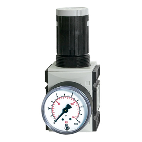 - Durch Verblockung von mindestens zwei oder mehreren Reglern können über eine Zuluftzuführung mehrere Arbeitsluftkreise mit verschiedenen Ausgangsdrücken versorgt werden