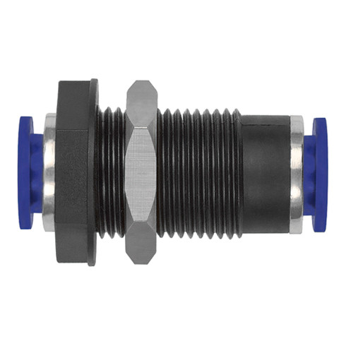 - Gerade Schott-Steckverbindung »Blaue Serie «, M16x1,5, für Schlauch-Außen-Ø 8 mm, Arbeitsdruck max. 15 bar, Kunststoff
