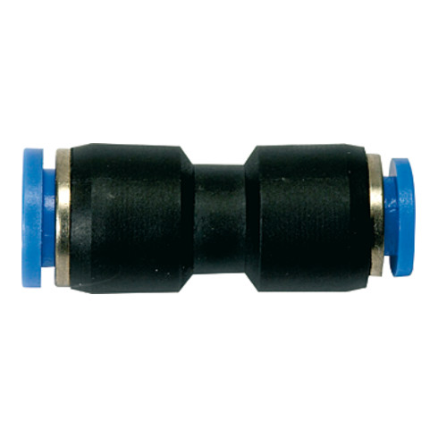 - Gerade Steckverbindung »Blaue Serie«, reduzierend, für Schlauch-Außen-Ø 12/10 mm, Arbeitsdruck max. 10 bar, Kunststoff/MS vern