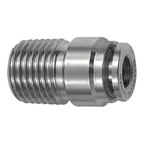 - Gerade Steckverschraubung, mit rundem Körper, R 1/4 a., für Schlauch-Außen-Ø 12 mm, Arbeitsdruck max. 20 bar, Edelstahl 1.4404. Für den Einsatz in aggressiveren Umgebungen und bei korrosiven Medien