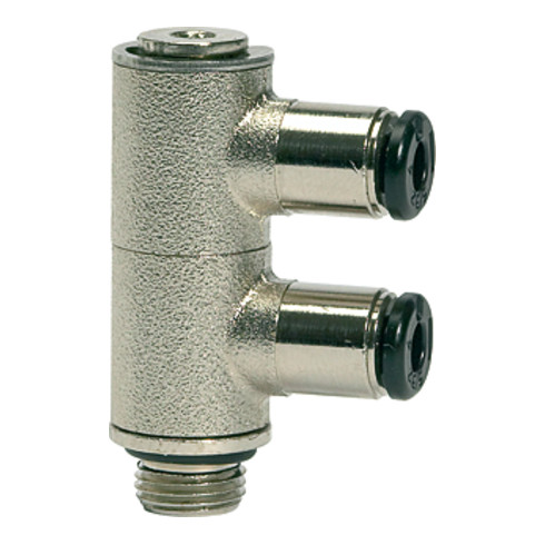 - L-Mehrfachverteiler 2-fach »click-clock«, drehbar, G 1/4 a., für Schlauch-Außen-Ø 10 mm, Arbeitsdruck max. 16 bar, Messing vern