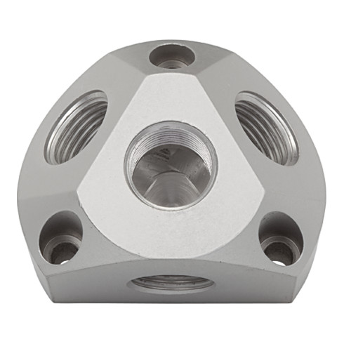 • Luftverteilerdose, Aluminium, mit 2 Stopfen, Eingang G 3/4, Ausgang 3x G 1/2. Mit 2 Stopfen