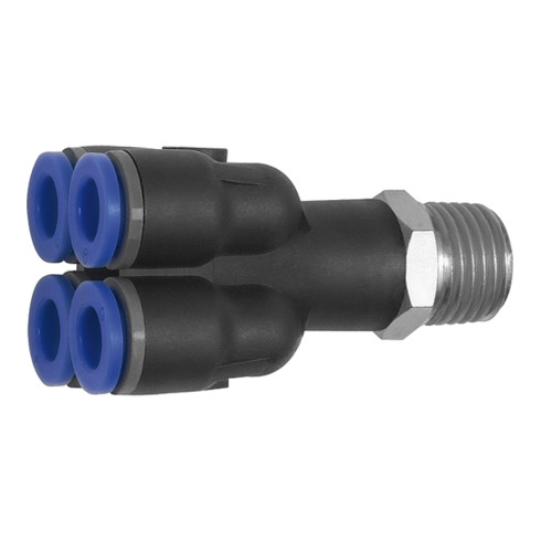 - Mehrfachverteiler »Blaue Serie«, 4-fach, drehbar, R 1/8 a., für Schl.-Außen-Ø 4 mm, Arbeitsdruck max. 10 bar, Kunststoff/MS vern