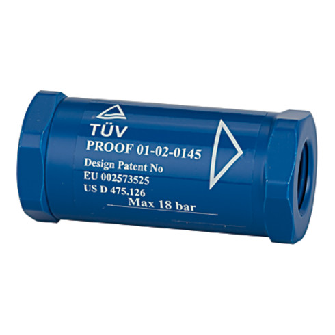 - Schlauchbruchsicherung »Hose Guard«, Aluminium, Kolben Aluminium, Betriebstemp. -20 °C bis 120 °C, G 1 IG/IG, PE max. 18 bar