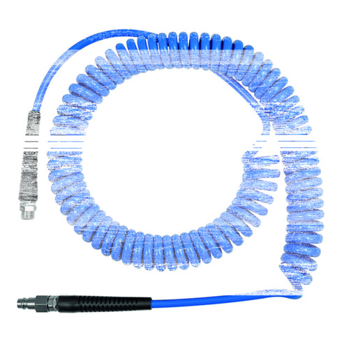 - Spiralschlauch, Verschraubung und Knickschutzfeder, PU, G 1/4, Schlauch-ø 10x6,5, PN bei 23 °C max. 11 bar, Länge 3,0 m