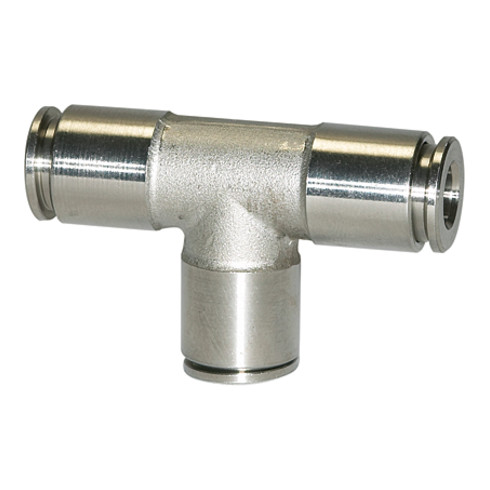 - T-Steckverbindung, für Schlauch-Außen-Ø 12 mm, Arbeitsdruck max. 15 bar, Edelstahl 1.4404. Für den Einsatz mit aggressiven Medien und bei korrosiven Außeneinflüssen,. in der Lebensmittelindustrie und im Hygiene- und Sanitärbereich