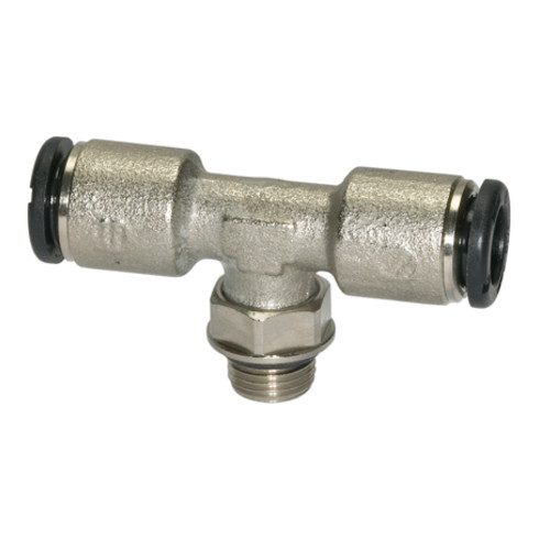 - T-Steckverschraubung »click-clock«, drehbar, G 1/8 a., für Schlauch-Außen-Ø 4 mm, Arbeitsdruck max. 16 bar, Messing vern., SW 12. Die Weiterentwicklung unserer höchst erfolgreichen Schnellsteckverbinder-Serie im Material Messing vernickelt